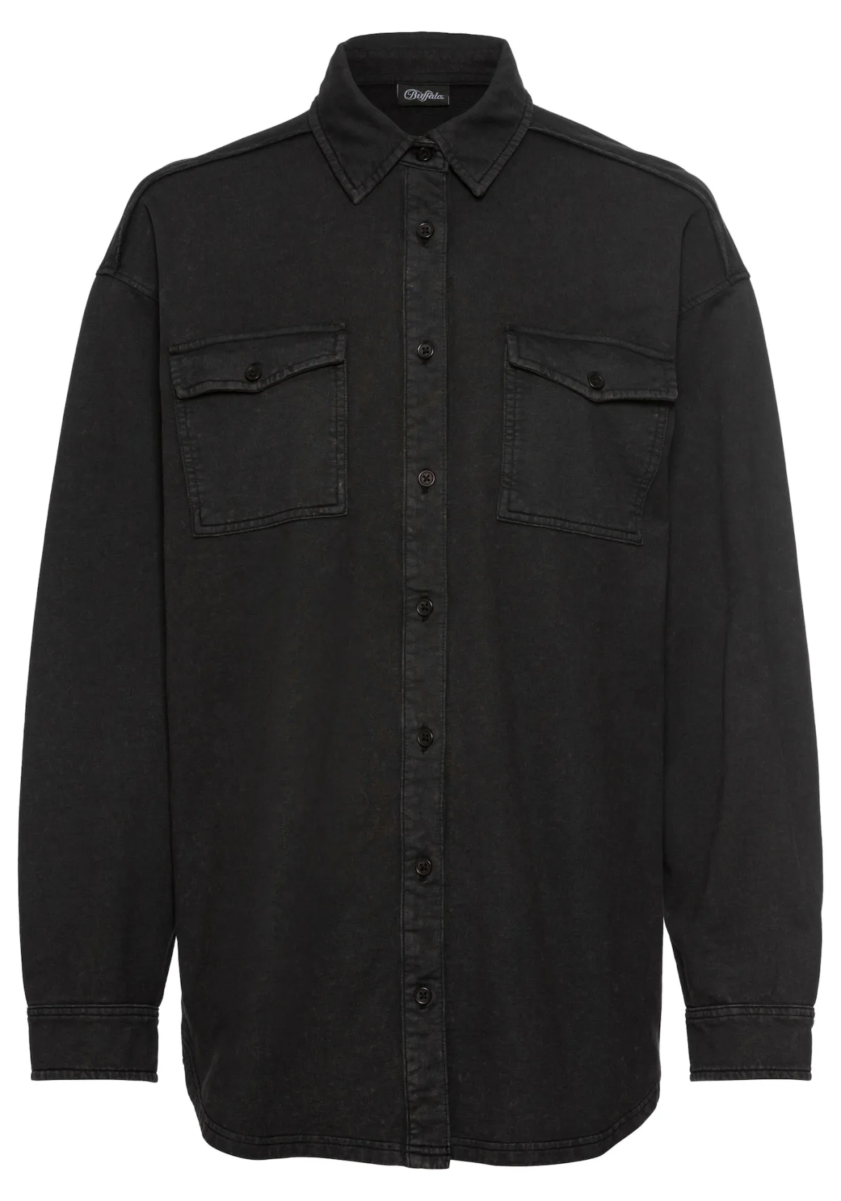 Blouse type: Blouseshirt; Design: 1-knoops manchetten, Gevoerde zoom/rand, Placket, Ronde zoom, Overcut schouder, Borstzak; Type sluiting: Knoopsluiting; Materiaal: Jersey; Motief: Effen; Kraag: Kentkraag; Extra's: Used-look, Voelt zacht aan; Pasvorm: Losse pasvorm; Armlengte: Lange mouw; Lengte: Lange pasvorm