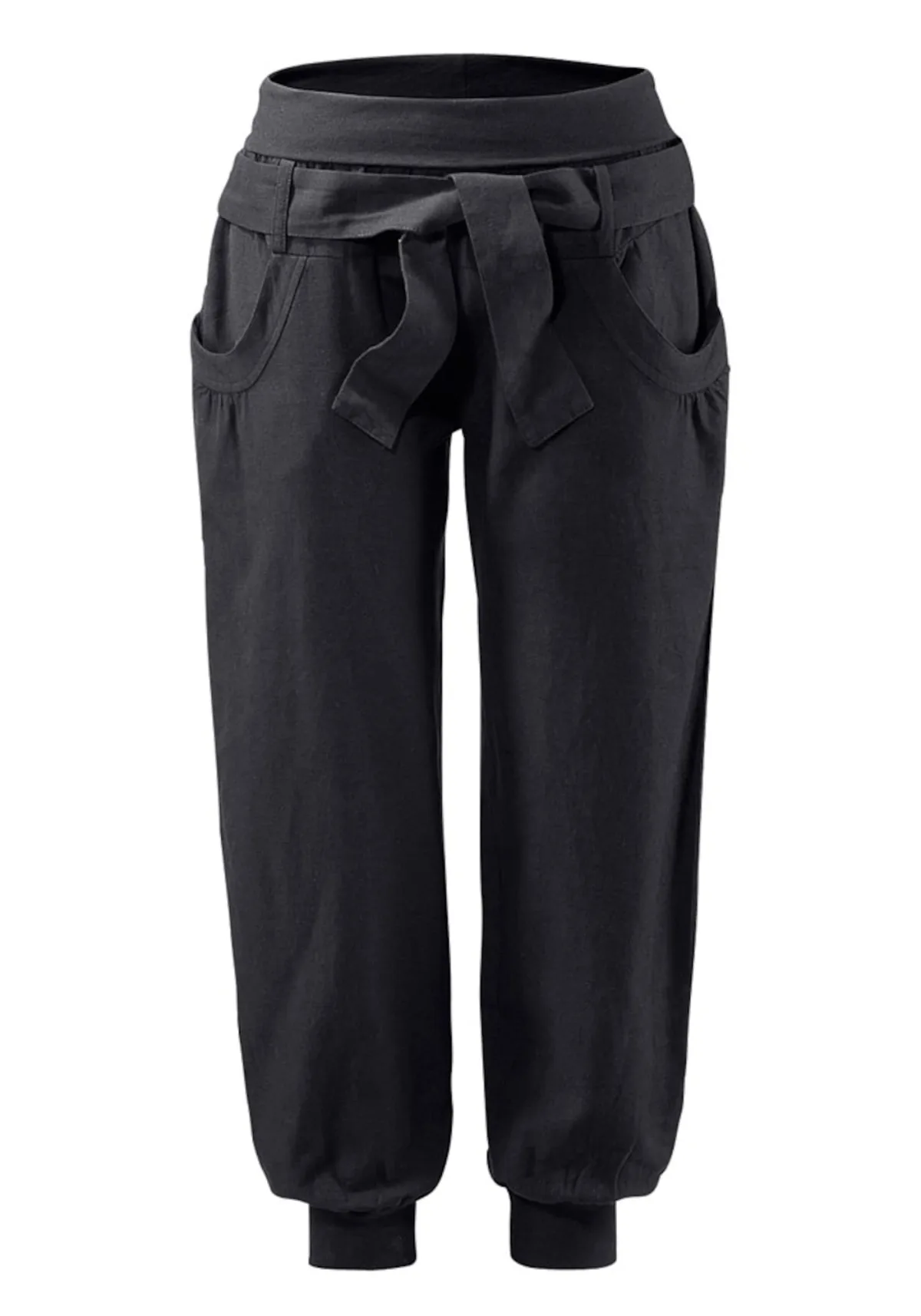 Design: Geribd ceintuurtje, Met riem; Materiaal: Katoen; Motief: Effen; Details: Plooien; Extra's: Op staal naden, Riemlussen; Lengte: 7/8 lengte; Pasvorm: Tapered; Taillehoogte: Low waist
