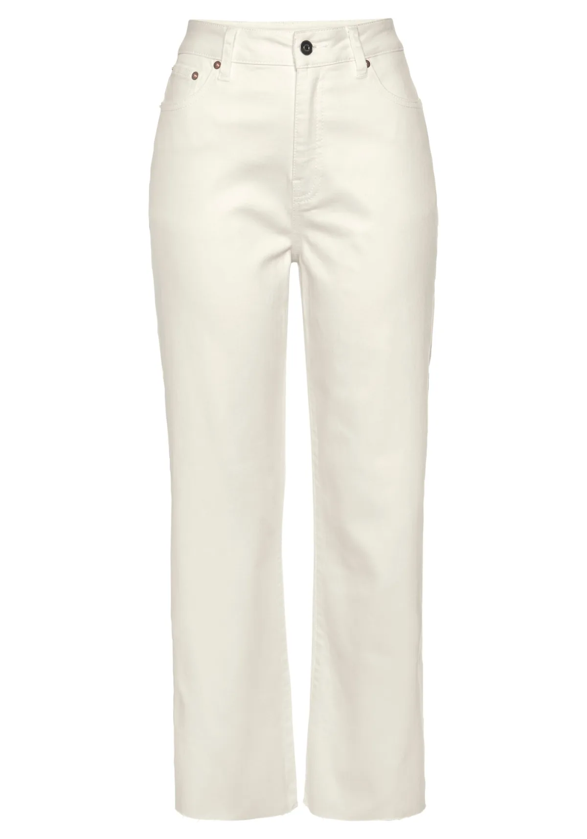 Design: 5-pocket-style; Type sluiting: Ritssluiting; Materiaal: Denim; Motief: Effen; Extra's: Riemlussen; Wassing: Colored denim; Lengte: 3/4 lengte; Pasvorm: Bootcut; Taillehoogte: High waist