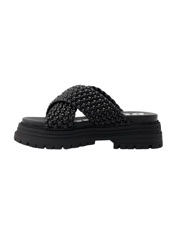 Design: Anatomisch gevormd voetbed, Profielzolen; Type sluiting: Slip; Type hak: Blokhak; Materiaal: Imitatieleder; Motief: Effen; Plateau: Met plateau; Materiaal: Imitatieleer; Schoenneus: Open toe; Extra's: Gevlochten structuur, Flexibele zool; Hakhoogte: Middelhoge hak (3-7 cm)