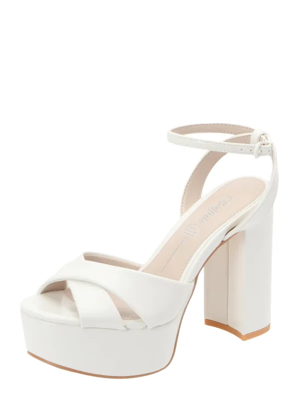 Design: Gevoerd, Enkelbanden, Profielzolen; Type sluiting: Riemsluiting; Type hak: Blokhak; Materiaal: Imitatieleder; Motief: Effen; Plateau: Met plateau; Materiaal: Imitatieleer; Schoenneus: Open toe; Extra's: Op staal naden, Gladde stof, Wijdte verstelbaar; Hakhoogte: Hoge hak (7-10 cm)