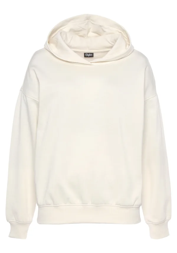 Design: Geribd ceintuurtje, Overcut schouder; Materiaal: Sweatstof; Halstype: Capuchon; Motief: Tekst print; Extra's: Voelt zacht aan; Pasvorm: Losse pasvorm; Armlengte: Lange mouw; Lengte: Normale lengte