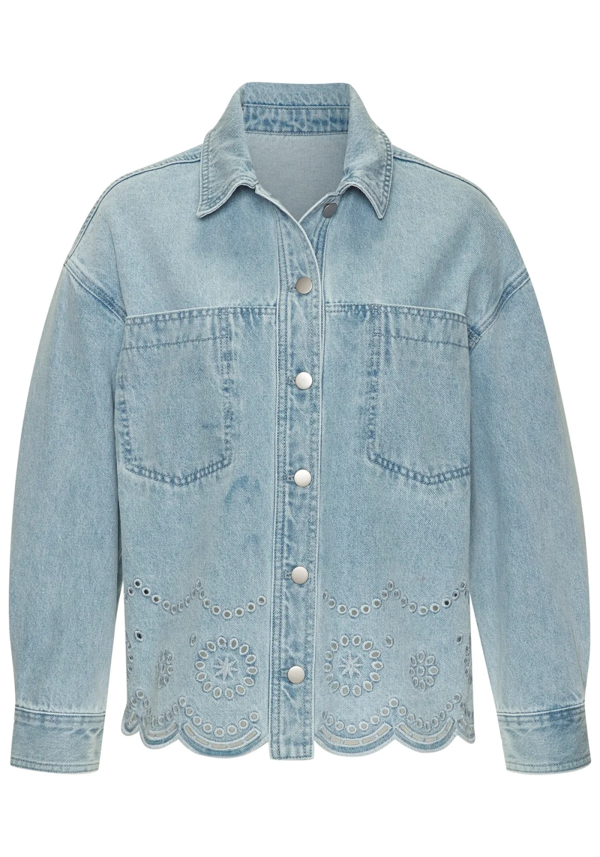 Design: Borstzak; Type sluiting: Knoopsluiting; Voering: Niet gevoerd; Materiaal: Denim; Motief: Effen; Extra's: Applicaties; Pasvorm: Losse pasvorm