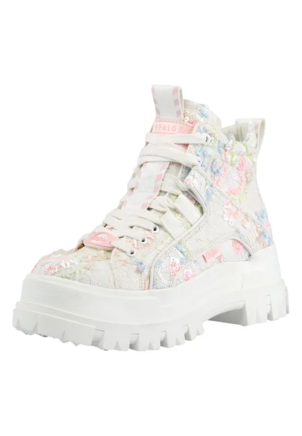 BUFFALO Veterlaarsjes ‘Aspha’ lichtblauw / pastelgroen / rosa / wit