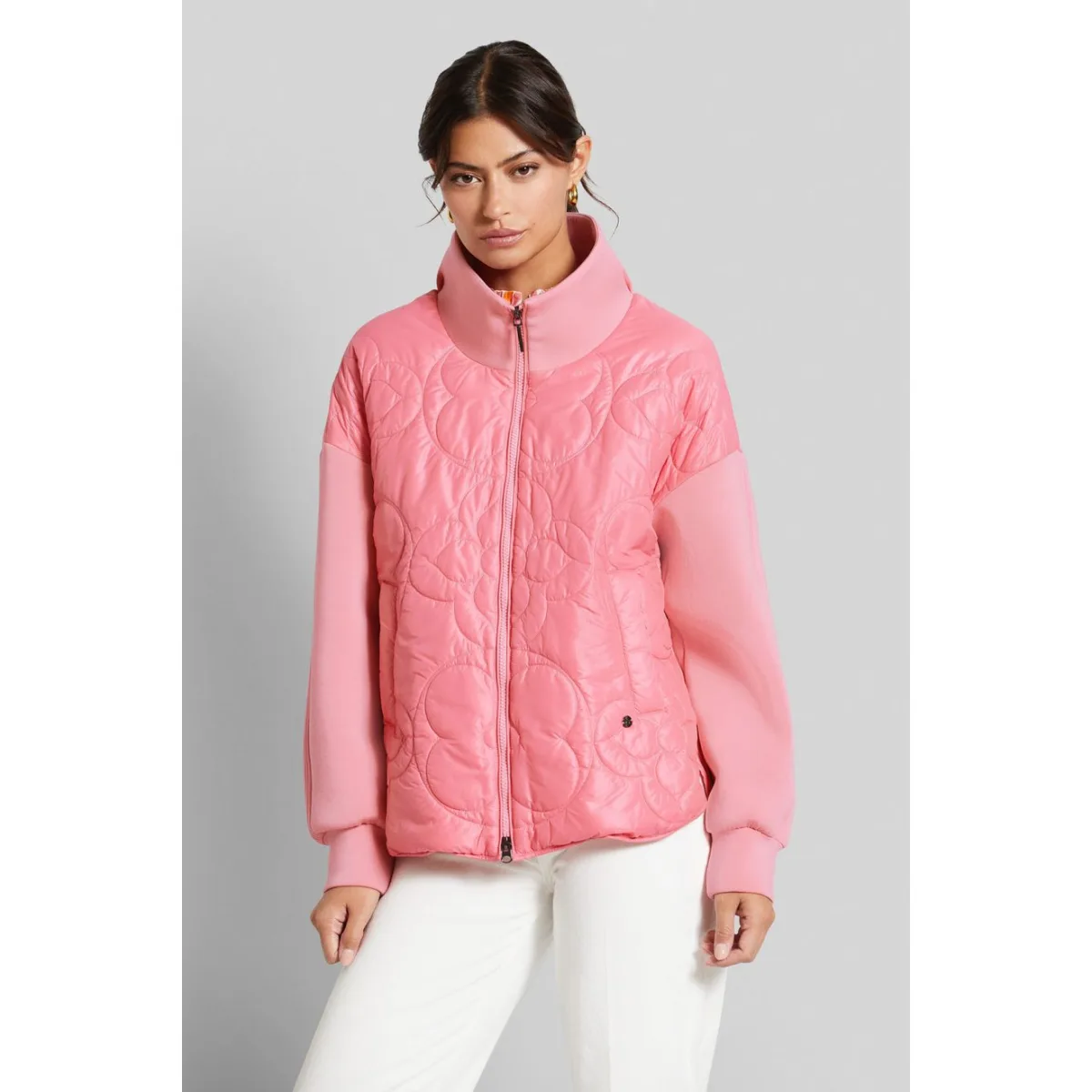 De casual blouson in materiaalmix is gemaakt van superzacht materiaal met een geraffineerd, vrouwelijk gewatteerd dessin. De opstaande kraag, klassieke paspelzakken en kleurgecoördineerde details geven het jack net dat beetje extra. Als 'Respect Nature'-product is de blouson gemaakt met een hoogwaardige vulvezel als bewuste vervanging voor echt dons.