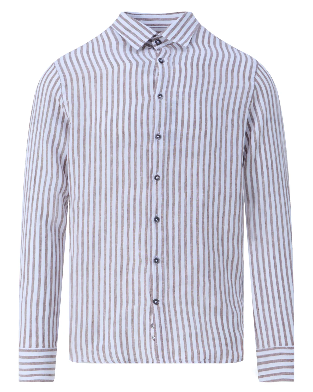 Bugatti Herren Gestreepte linnen overhemd met Kentkraag