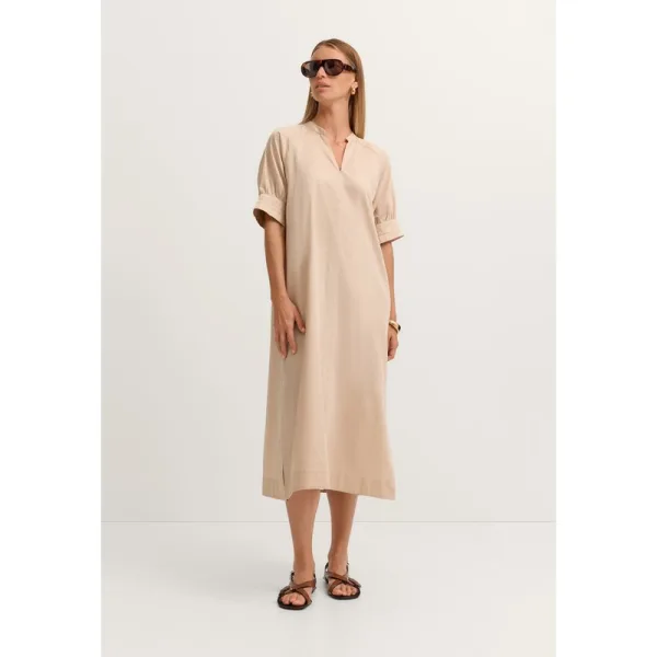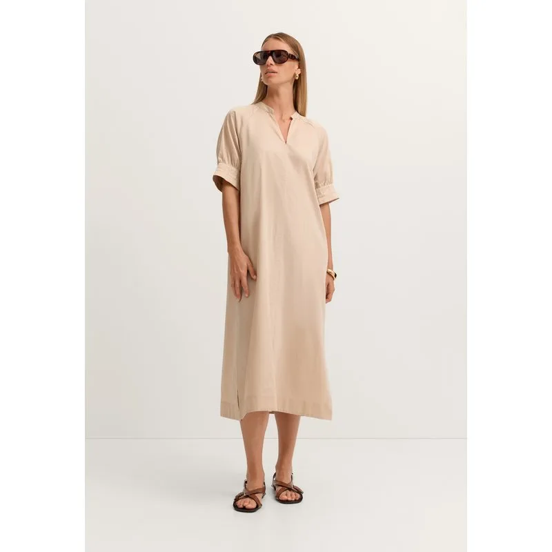 Deze bugatti blousejurk in Modern Fit is gemaakt van hoogwaardig katoensatijn en valt op door een banddetail op de mouw. De zijsplitten zorgen voor bewegingsvrijheid en een moderne look. Praktische zijzakken maken hem geschikt voor dagelijks gebruik. De kleine opstaande kraag met V-hals benadrukt de tijdloze stijl, de hoogwaardige katoenen stof voelt aangenaam aan op de huid. Ideaal voor warme dagen - in combinatie met sandalen of sneakers ben je altijd stijlvol gekleed.