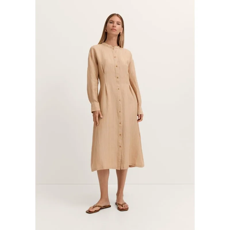Deze bugatti blousejurk in Modern Fit overtuigt door zijn licht getailleerde ontwerp en de luchtige linnenmix. Het gestreepte patroon geeft de jurk een frisse, zomerse look, terwijl de kleine opstaande kraag en de steekzakken aan de zijkant zorgen voor stijl en functionaliteit. Ideaal voor warme dagen - of je nu gaat winkelen in de stad of op vakantie gaat.