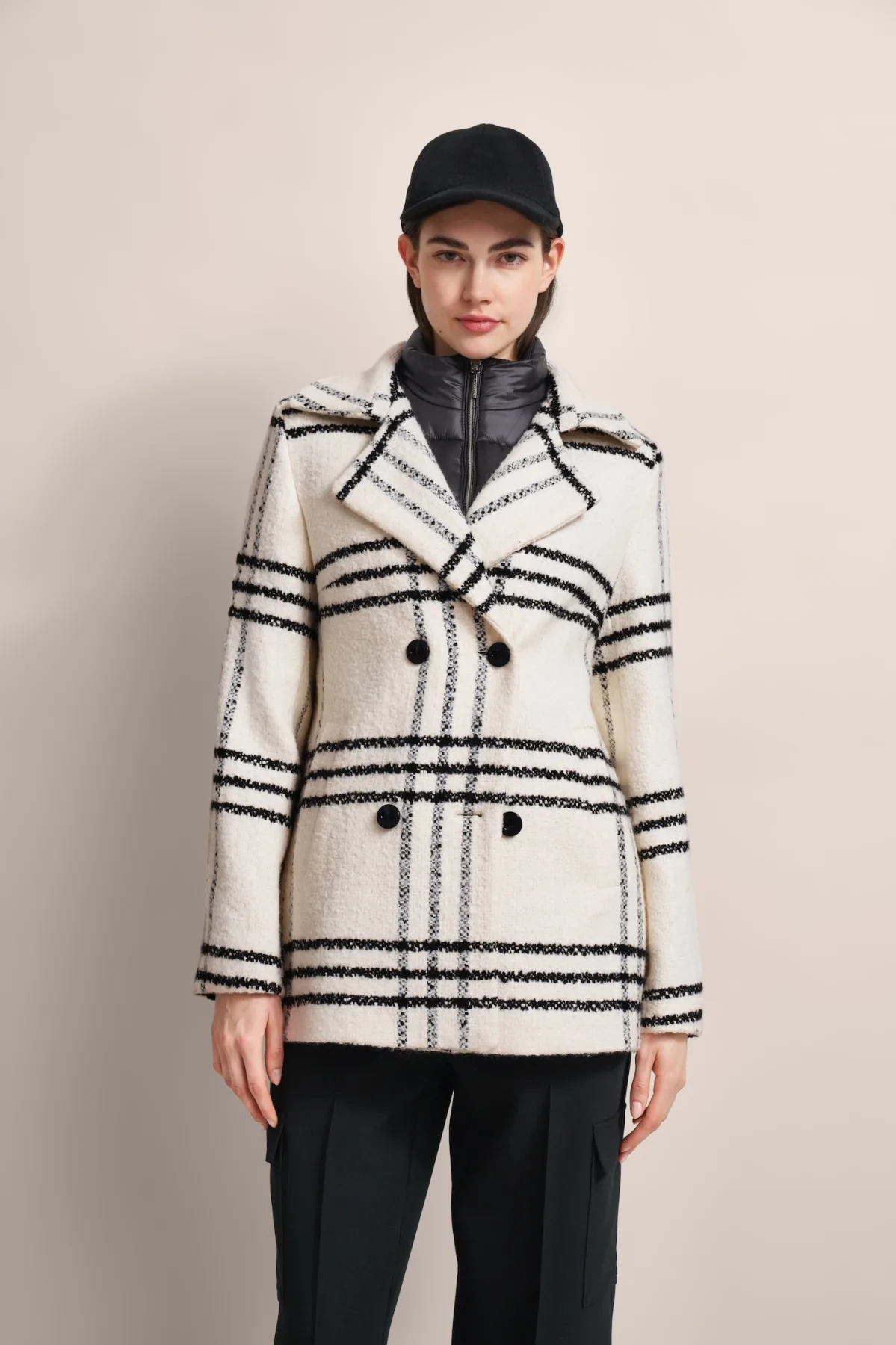 Maak een stijlvol statement met de geruite wollen jas van bugatti. Deze jas heeft een afneembare kraag en een double-breasted knoopsluiting en combineert klassieke elegantie met moderne details. De Flexcity-voering van bugatti garandeert maximaal comfort. Perfect voor de modebewuste vrouw die waarde hecht aan stijl en functionaliteit.
