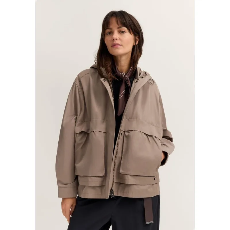 De bugatti damesblouson brengt een moderne oversized stijl in je garderobe. De lichte materiaalmix van 60% katoen en 40% polyester zorgt voor een aangenaam draagcomfort en tegelijkertijd voor vormvastheid. Met een losse pasvorm, gebreide kraag en vaste capuchon krijgt de jas een urban karakter. Praktische details zoals 2-weg steekzakken, binnenzakken en grote opgestikte zakken maken het jack functioneel en veelzijdig. Dankzij het waterafstotende oppervlak ben je ook bij wisselvallig weer beschermd. Onderhoudsvriendelijk in een wasprogramma van 30 °C. Een stijl die comfort en functionaliteit combineert - tutto bene voor je dagelijks leven.