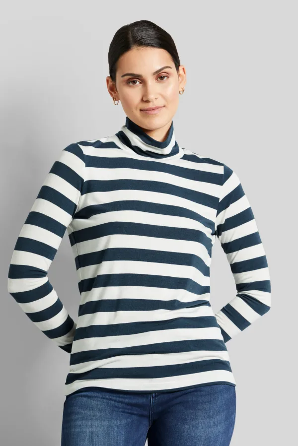 Deze coltrui is een must-have voor dit seizoen. Onze trui is gemaakt van rekbare modalstof, waardoor hij zeer comfortabel is om te dragen. De gestreepte coltrui is zo licht als een T-shirt, waardoor je hem heel gemakkelijk onder een blazer of met een vest kunt dragen.