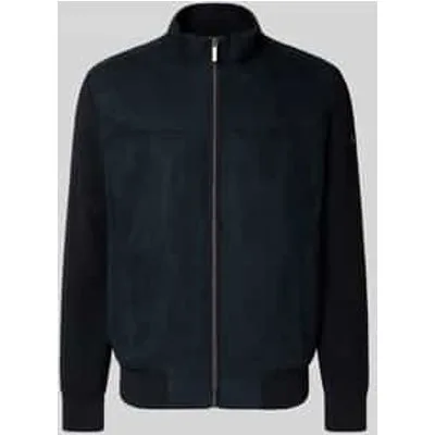 Bugatti Gebreid jack met suède aan de voorkant en opstaande kraag