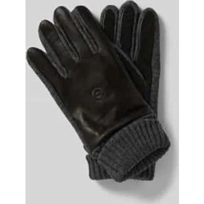 Herenhandschoenen van bugatti;Mix van leer en textiel;Vingerhandschoenen;Labeldetail;Gebreide boordjes