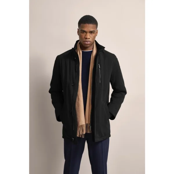 Wees klaar voor elk weertype met de bugatti all-season jas! Deze veelzijdige jas is waterafstotend en heeft een moderne opstaande kraag en functionele zakken, waaronder schuine paspelzakken en een borstzak - allemaal veilig afgesloten met ritsen. De eenvoudige gewatteerde voering aan de binnenkant biedt extra opbergruimte dankzij twee binnenzakken. Perfect voor een urban lifestyle!