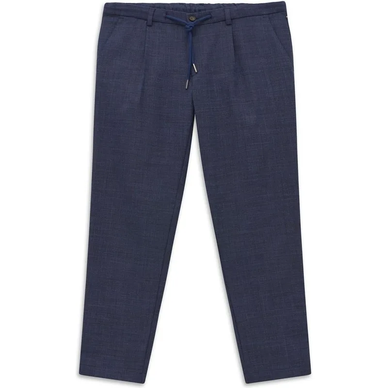 Deze bugatti broek met bandplooien combineert slimme elegantie met ontspannen lichtheid – perfect voor je moderne dagelijkse leven. De hoogwaardige materiaalmix met stretch biedt je bewegingsvrijheid en een superieur gevoel, terwijl de tapered fit zorgt voor een slank, eigentijds silhouet. De elastische tailleband met koord aan de buitenkant zorgt voor flexibel comfort en past zich moeiteloos aan je dag aan. Franse zakken aan de voorkant en een dubbele paspelzak met knoop aan de achterkant geven de broek een klassieke, strakke look. Dankzij de easy-care eigenschappen kun je hem op 30 graden in een fijnwasprogramma wassen en op lage temperatuur strijken. Een broek voor ontspannen momenten in stijl – gewoonweg bellissimo.