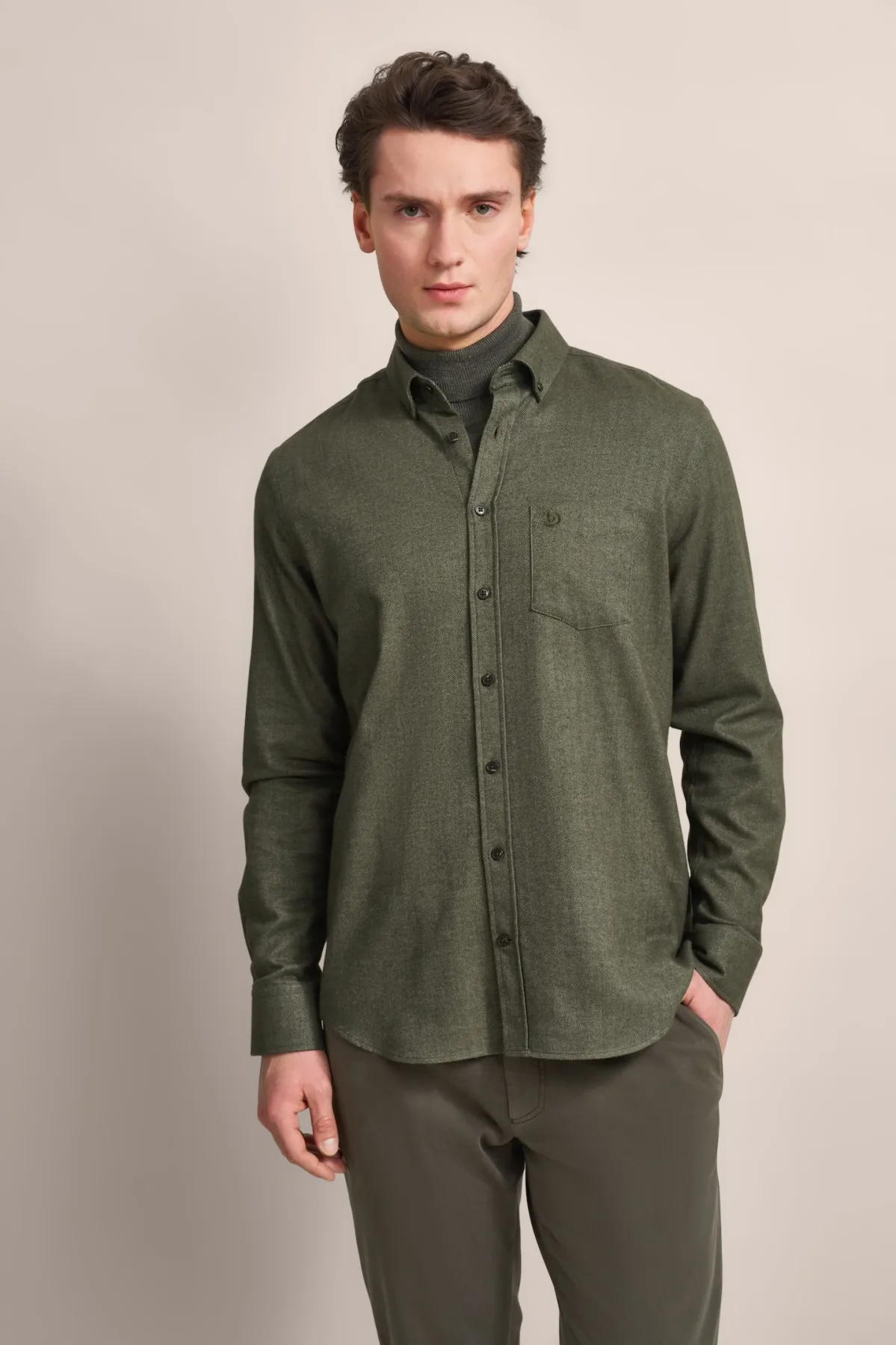 Voel je helemaal op je gemak in een bugatti casual overhemd van 100% katoen! Dit overhemd van visgraatflanel maakt indruk met zijn comfortabele normale pasvorm en klassieke Kent-kraag. Het borstzakje en de vierkante manchetten met 2 knopen geven het overhemd extra stijl. Perfect voor ontspannen looks en ideaal om te wassen op 30 graden - een veelzijdige toevoeging aan je garderobe!