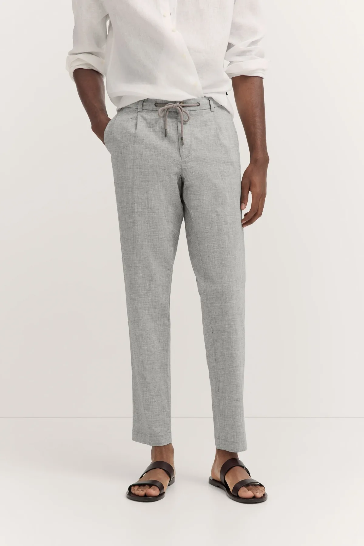Bugatti Herren Geplooide broek met katoen-linnenmix