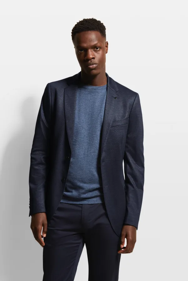 Het elegante single-breasted jasje met reverskraag, klepzakken, een borstzak en 4 mouwknopen is een tijdloze klassieker. Het jack overtuigt vooral door het comfortabele jerseymateriaal en de bi-stretchfunctie. Bijzonder highlight: het jack heeft een bedrukt Glencheck-dessin in een ton-sur-ton marine-kleur.