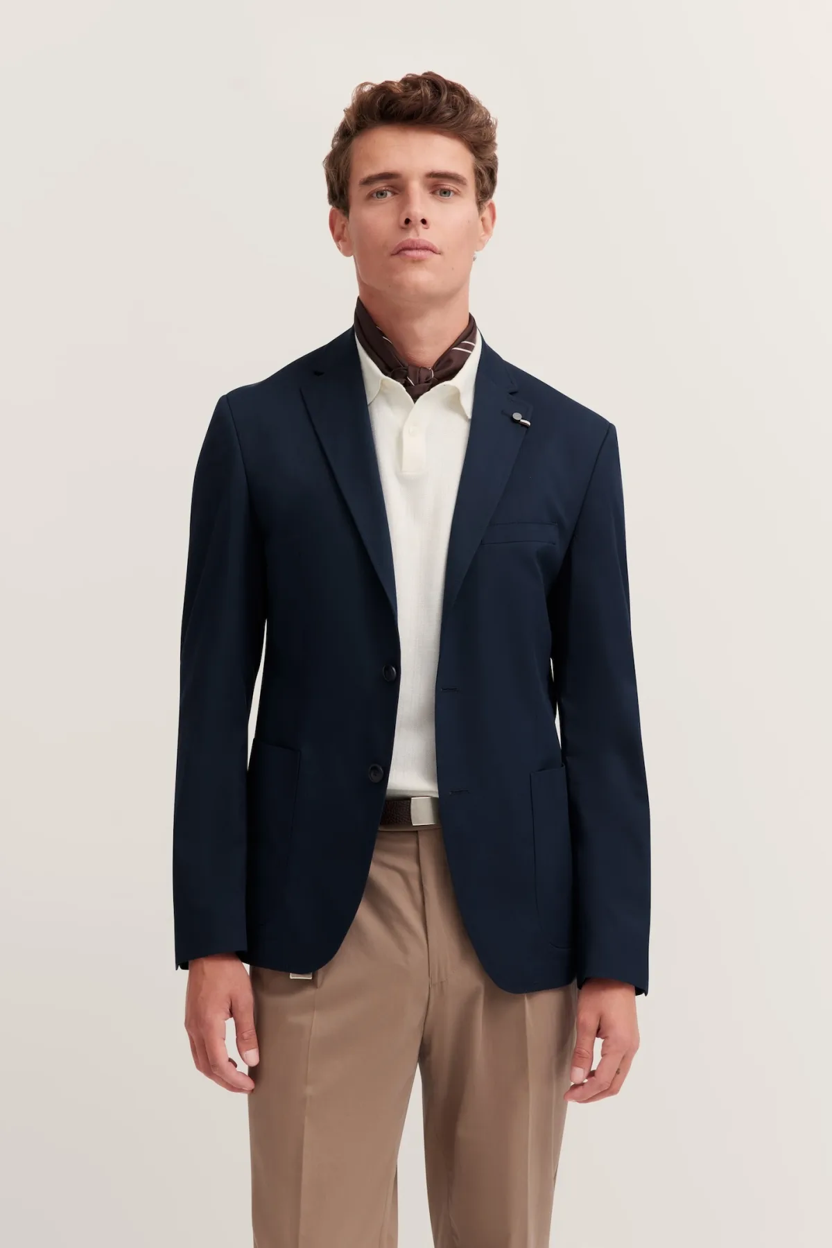 Met zijn stretchfunctie en lichte katoenmix biedt dit moderne jack van bugatti je optimale bewegingsvrijheid en maximaal comfort. Met een reverskraag, opgezette zakken en zijsplitten combineert het een stijlvol design met praktische details - perfect voor je elegante look.