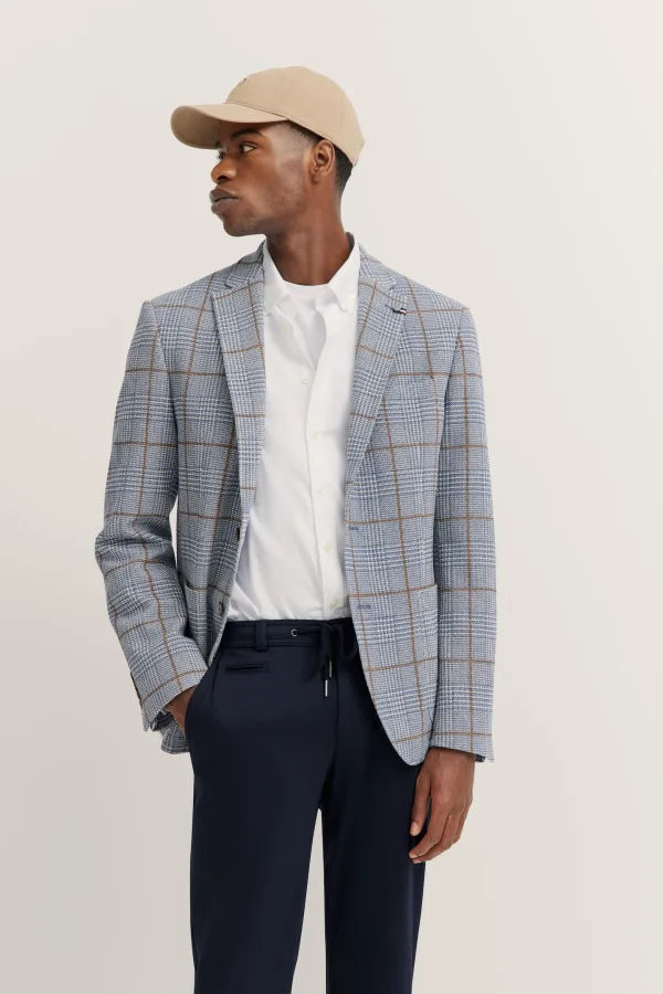 Zorg voor een stijlvolle verschijning bij elke gelegenheid met het bugatti-jack met modieus ruitpatroon. De stretchfunctie en hoogwaardige halfvoering bieden je optimaal comfort en bewegingsvrijheid, terwijl de opgestikte zakken en reverskraag het jack een elegante touch geven.