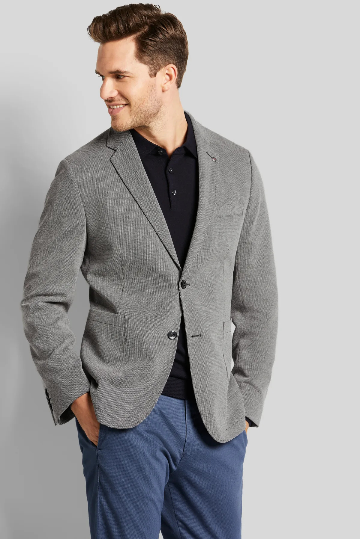 Het jack maakt indruk met zijn ingetogen elegantie. Het jersey item met reverskraag en stretchfunctie maakt indruk met zijn kleine ontwerp. Het gedeeltelijk gevoerde jack heeft opgestikte zakken en elastische Flexcity-inzetstukken, die zorgen voor veel bewegingsvrijheid. Zij- en mouwsplitten, binnen- en borstzakken ronden het ontwerp af.