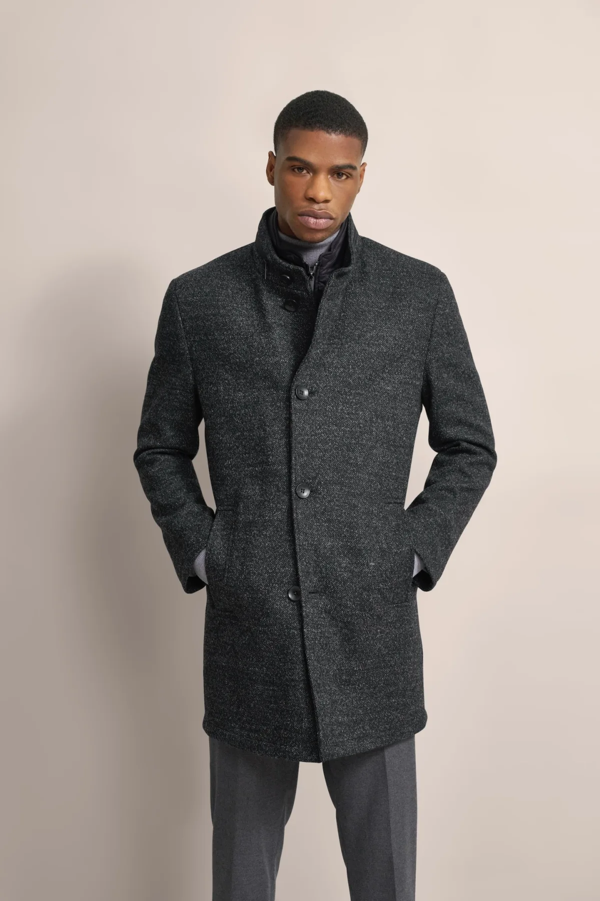 Maak een modestatement met de bugatti jas, die elegantie en comfort naadloos combineert. Deze jas heeft een moderne opstaande kraag met een geïntegreerde ritssluiting en biedt een nauwsluitende pasvorm dankzij de Flexcity afwerking en stretchfunctie. Kleurrijke accenten in de binnenzakken en de volledige voering ronden het ontwerp in stijl af.