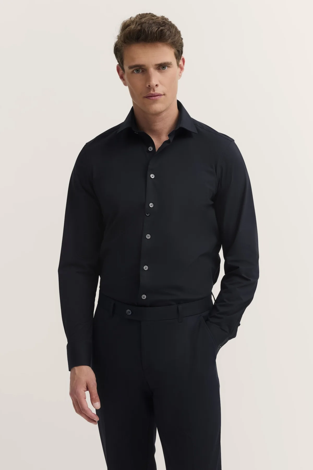 Het jersey overhemd van bugatti overtuigt door het zachte jerseymateriaal en het stretchgehalte, dat optimaal draagcomfort biedt. De klassieke Kent-kraag en cleane look maken dit overhemd veelzijdig, terwijl de discrete bugatti-vlag in de zijnaad een subtiel accent toevoegt.