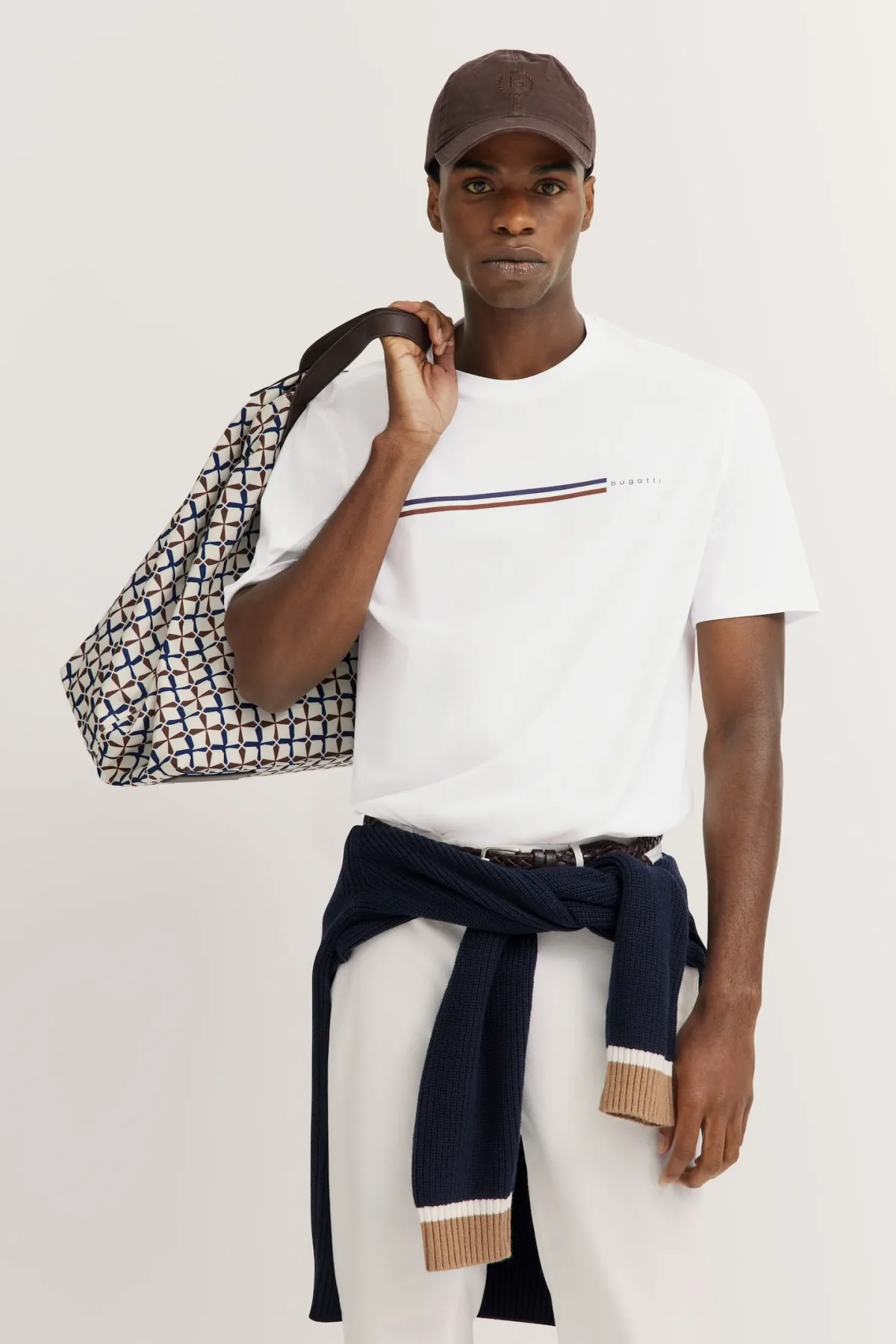 Dit T-shirt van bugatti is gemaakt van 100% katoen van hoge kwaliteit en biedt je optimaal comfort dankzij de zachte stof en klassieke ronde halslijn. Met zijn rechte afwerking en ¥moderne pasvorm? past het perfect in je dagelijkse look en zorgt het voor een stijlvol en comfortabel gevoel.