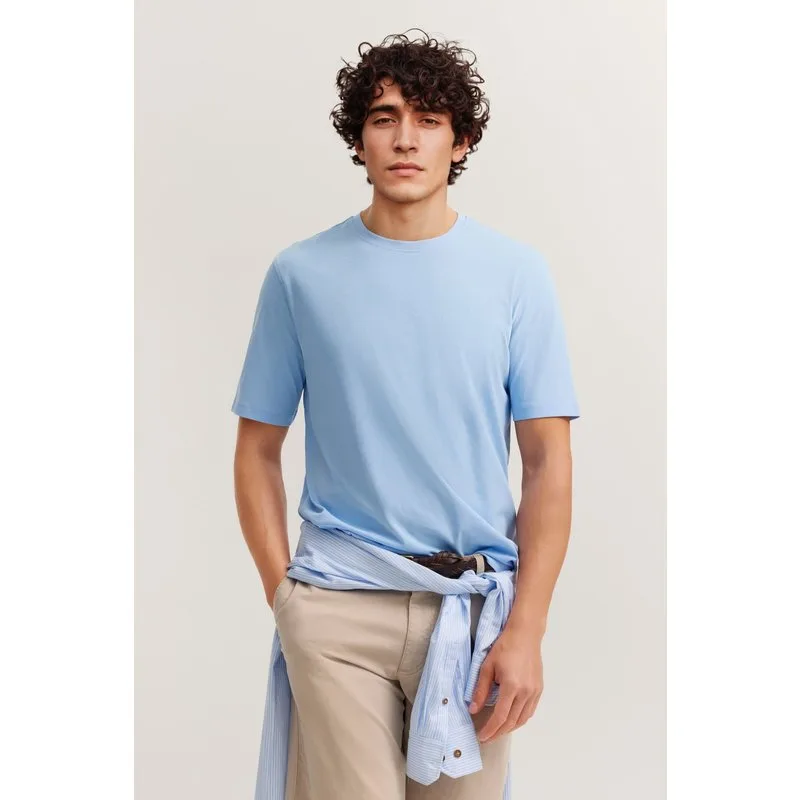 Dit bugatti T-shirt voor heren overtuigt door zijn strakke lijnen en aangenaam draagcomfort. Het hoogwaardige katoen voelt zacht aan op de huid en maakt het shirt tot de ideale metgezel voor elke dag. Dankzij de moderne pasvorm zit het zowel modern als comfortabel. De klassieke ronde hals, het eenvoudige effen ontwerp en de korte mouwen zorgen voor een tijdloze look die moeiteloos te combineren is. Een ongecompliceerd essential voor relaxte stijlen en jouw persoonlijke dolce vita - nonchalant, stijlvol en authentiek.