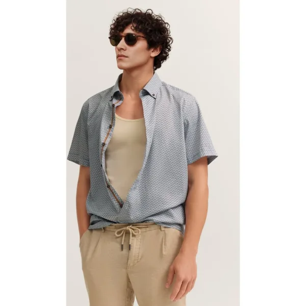 Bugatti Herren Korte mouwen overhemd elegant met all-over patroon Prijzen