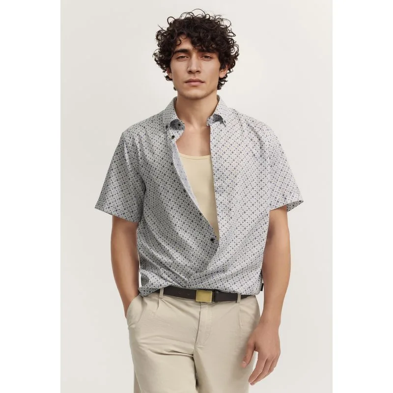 Bugatti Herren Korte mouwen overhemd elegant met all-over patroon