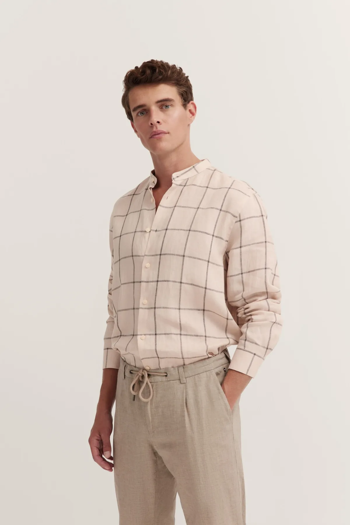 Het geruite linnen overhemd van bugatti biedt je een moderne en casual look dankzij 100 procent linnen van hoge kwaliteit en een comfortabele ¥Casual Fit' pasvorm. De stijlvolle mandarijnkraag geeft het overhemd een speciale touch, terwijl de discrete bugatti-vlag in de zijnaad het design afrondt.