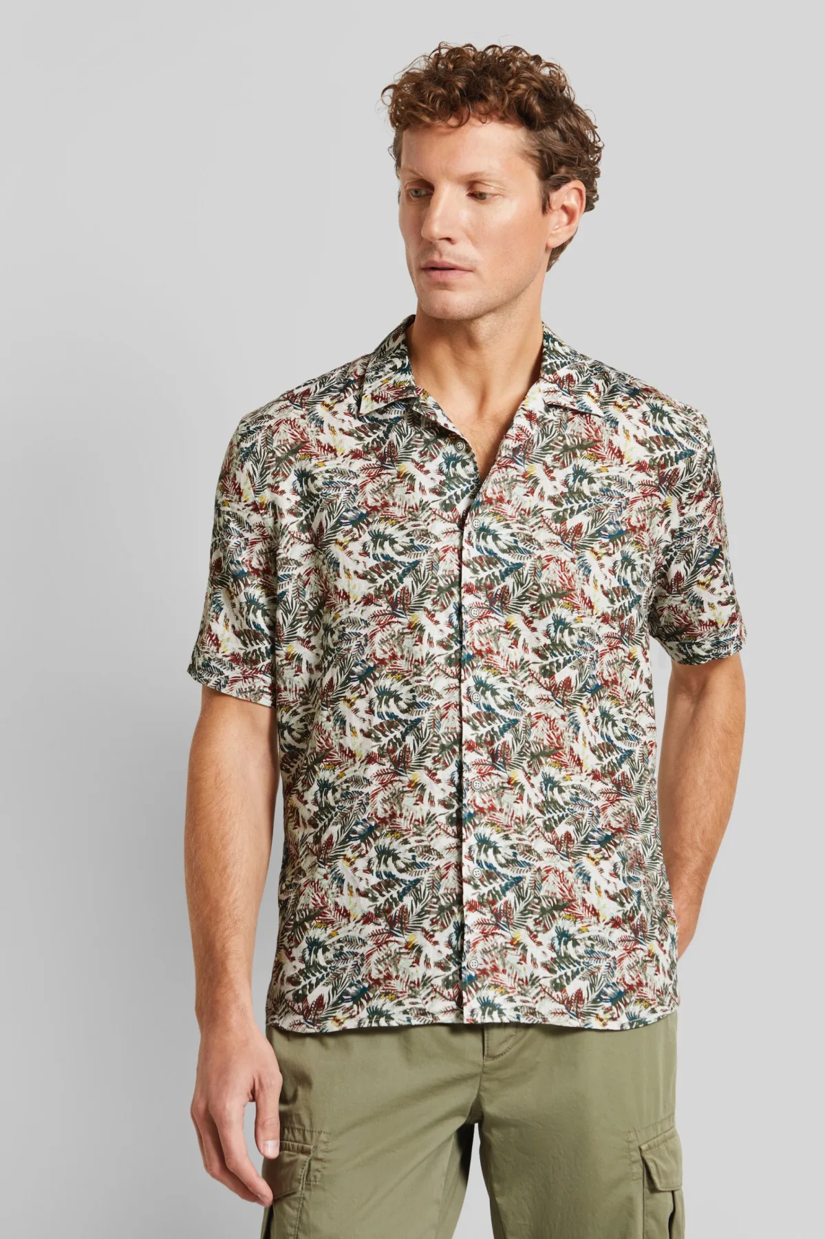 Ons linnen overhemd met bladprint combineert een ontspannen stijl met natuurlijke frisheid. De resortkraag en 1/2 mouw maken het perfect voor warme dagen. De bugatti-vlag in de zijnaad maakt het een ongecompliceerd modestatement voor ontspannen gelegenheden.