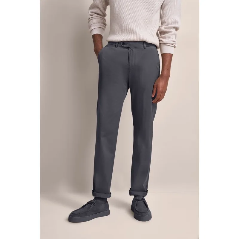 Deze broek met platte voorkant is een absolute modeklassieker. De katoen-elastaanmix geeft de broek een aangenaam zacht gevoel en vergezelt je in elk seizoen. De slanke pasvorm zorgt voor een modieus silhouet. Praktische riemlussen ronden het ontwerp af.