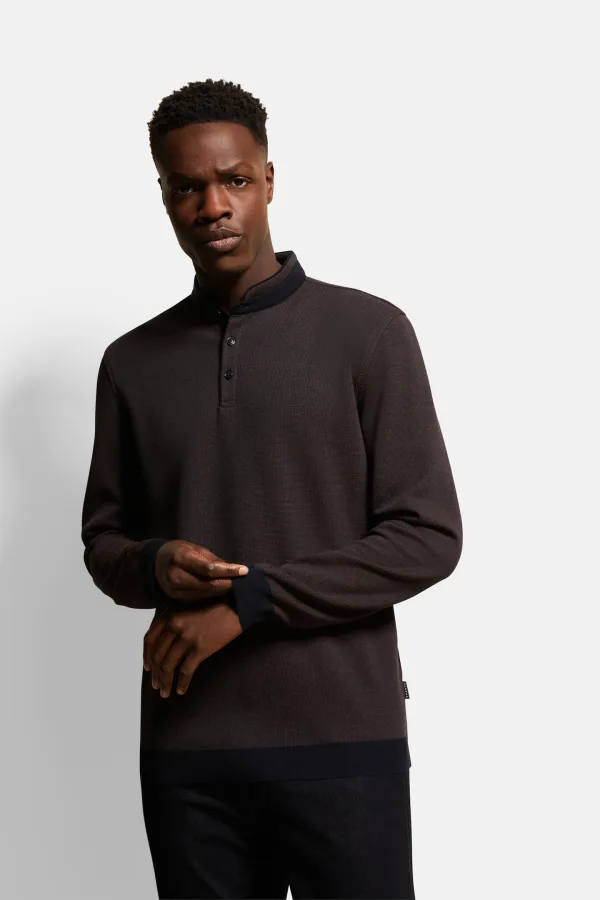 Bugatti Herren Polo met lange mouwen en opstaande kraag