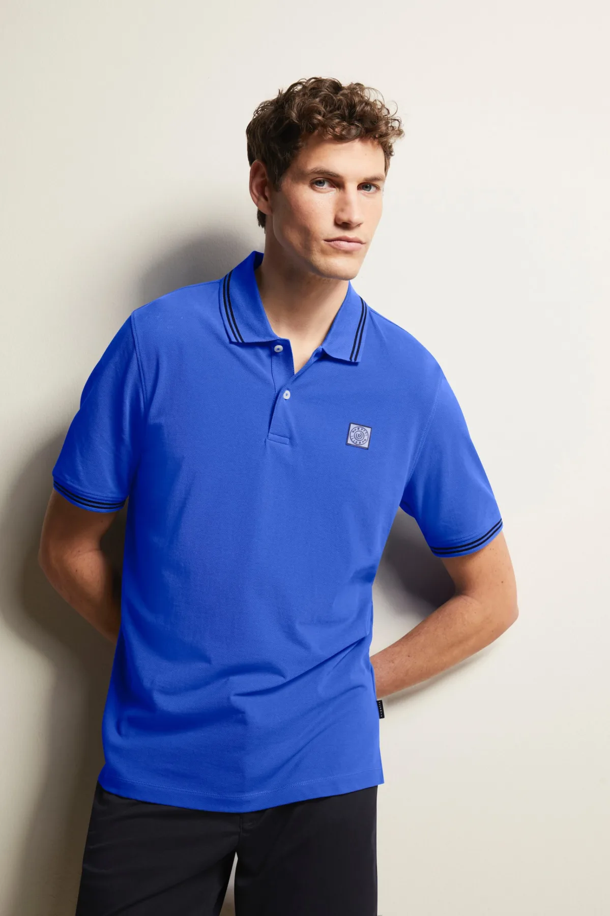 Een klassieke polo met aantrekkelijke details: twee contrasterende strepen op de kraag en mouwen vallen op en zijsplitten bieden bewegingsvrijheid. De polo is gemaakt van 100% duurzaam en ademend katoen. Een polokraag rondt het ontwerp perfect af.