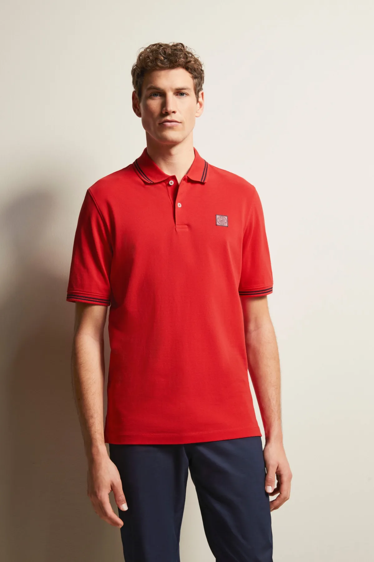 Een klassieke polo met aantrekkelijke details: twee contrasterende strepen op de kraag en mouwen vallen op en zijsplitten bieden bewegingsvrijheid. De polo is gemaakt van 100% duurzaam en ademend katoen. Een polokraag rondt het ontwerp perfect af.