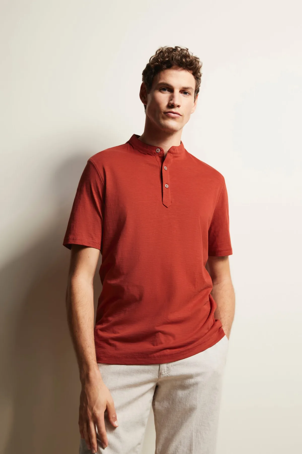 Deze modieuze polo is gemaakt van 100% biologisch katoen. De opstaande kraag is een blikvanger en geeft de polo een elegante touch. Het materiaal van vlamgaren wordt gekenmerkt door zijn unieke textuur en subtiele, gevlekte effect. Het geeft deze polo een subtiele maar opvallende touch die hem onderscheidt van anderen.