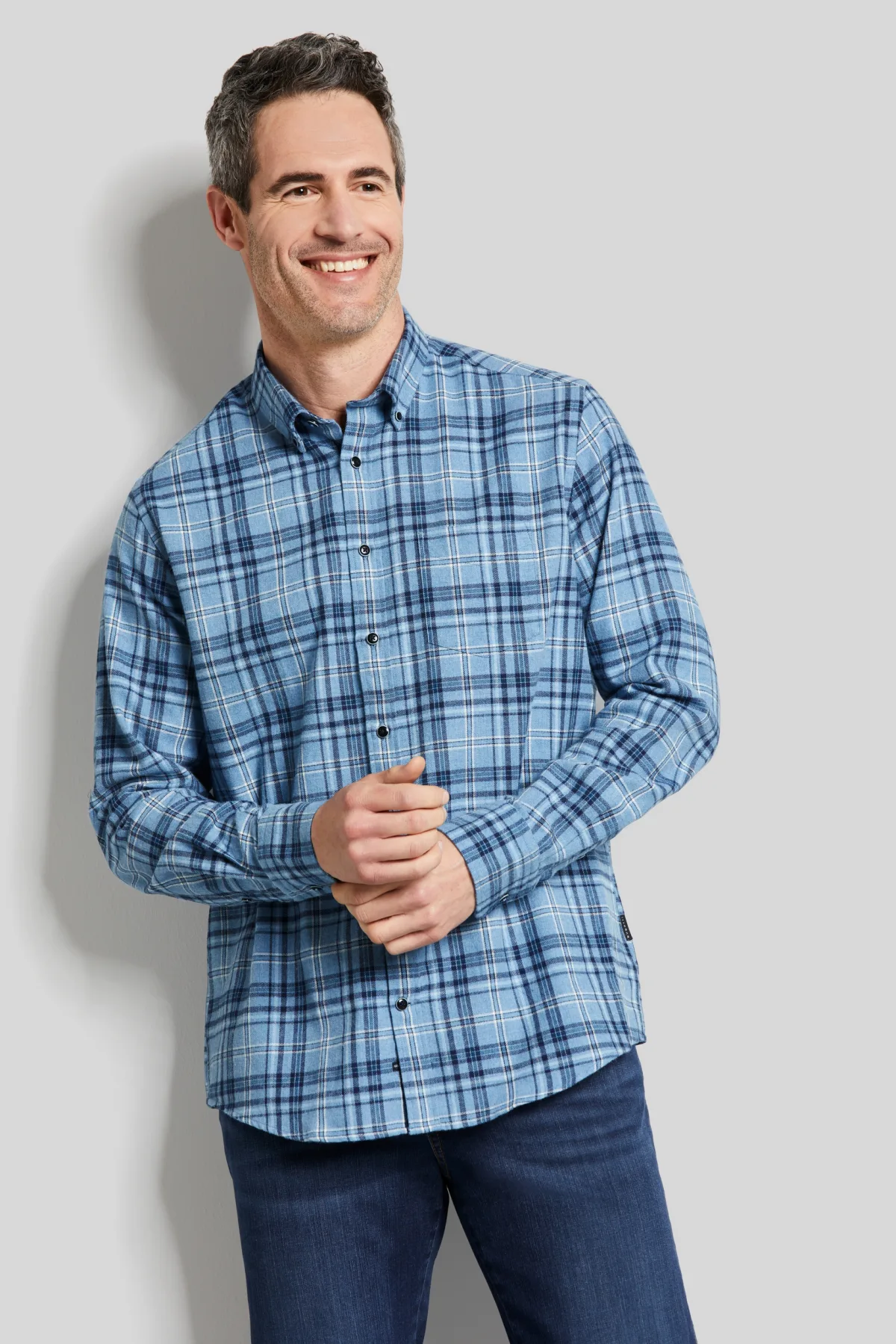 Een mooi flanellen overhemd mag in geen enkele garderobe ontbreken. Het geruite bugatti overhemd maakt indruk met zijn visgraatmotief. De button-down kraag en opgestikte borstzak maken het klassieke ontwerp compleet.