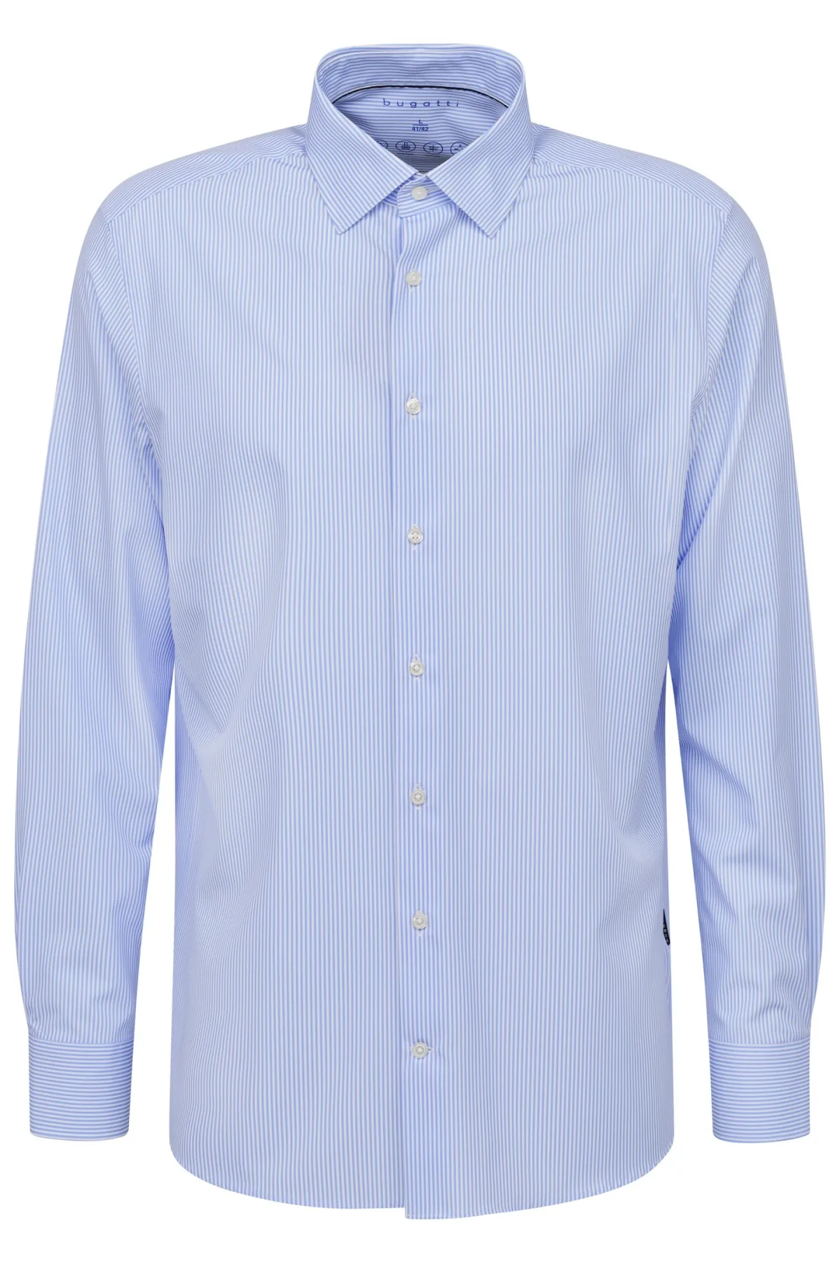 Ontdek het bugatti performance overhemd, perfect voor de modebewuste man die waarde hecht aan stijl en comfort. Dit gestreepte overhemd van een mix van polyester en elastaan garandeert een uitstekende pasvorm en bewegingsvrijheid dankzij het elastaangehalte. Met een elegante Kent-kraag en ronde manchetten met 2 knopen. Het bugatti-label in de zijnaad zorgt voor een exclusieve touch.