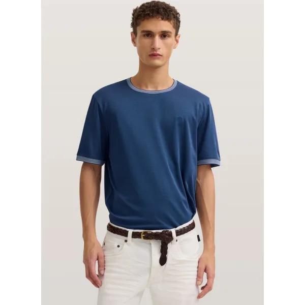 Dit bugatti heren Modern Fit T-shirt met halflange mouwen overtuigt door de hoogwaardige katoenmix voor aangenaam draagcomfort en vormvastheid. De klassieke ronde hals met decoratieve strepen en het veelzijdige ontwerp met halflange mouwen maken het een ideale metgezel voor dagelijks gebruik en vrije tijd.