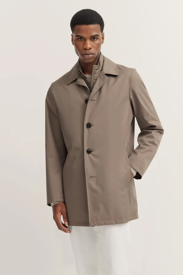 De waterafstotende bugatti jas combineert functionaliteit en stijl op het hoogste niveau. De afneembare overslag en de praktische steekzakken maken hem de ideale metgezel voor wisselvallig weer. Dankzij de ¥moderne pasvorm? zorgt hij voor een eigentijds, slank silhouet - perfect voor je urban look.