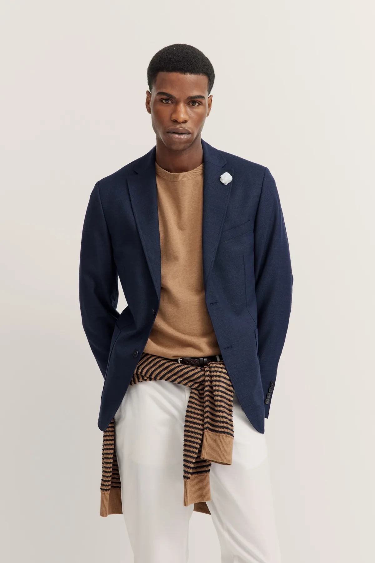 Geef je outfit een elegante touch met het bugatti-jack van 100 procent wol. De gebloemde clutchspeld op de revers en moderne details zoals opgestikte zakken en gedeeltelijke voering maken het de ideale metgezel voor speciale gelegenheden. Geniet van de bewegingsvrijheid die de zijsplitten bieden!