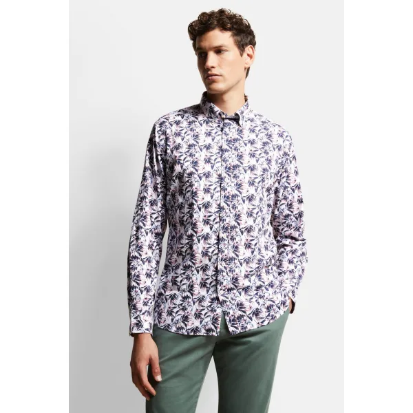 Een prachtige bladprint laat het overhemd stralen. De button-down kraag geeft elke outfit een sportieve, elegante look. De nauwsluitende 'modern fit' flatteert het figuur en geeft je een eigentijdse look.