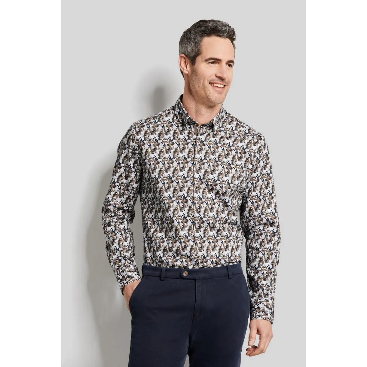 Dankzij de casual look is dit overhemd perfect om elke dag te dragen. De bloemmotieven zijn fascinerend. De button-down kraag en de subtiele beige contrasten maken het ontwerp compleet.