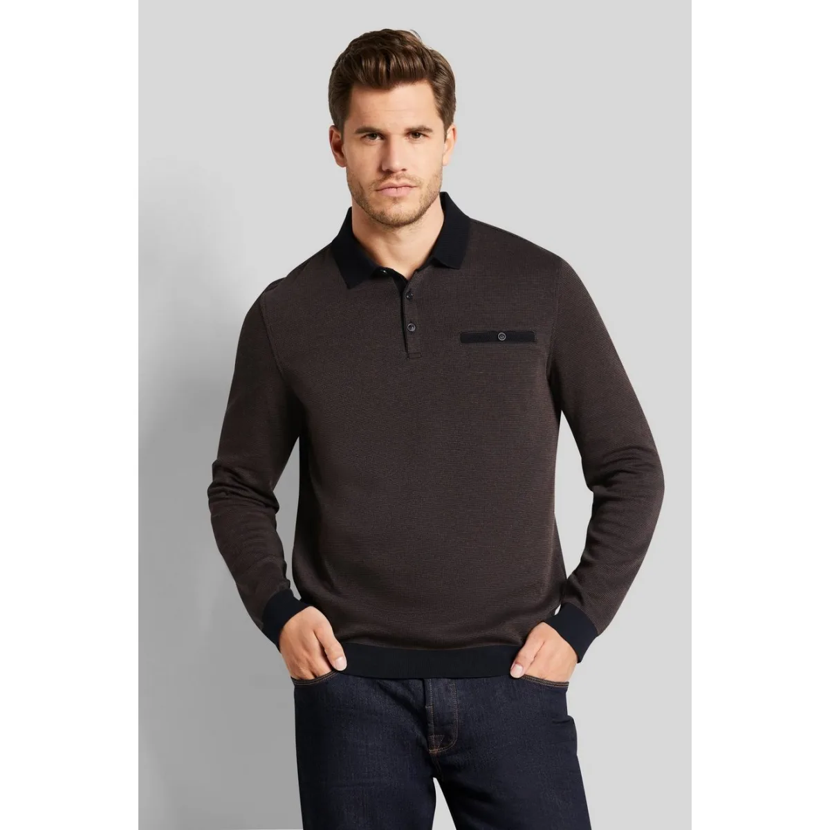 Bugatti Herren Polo met lange mouwen in 2tone look