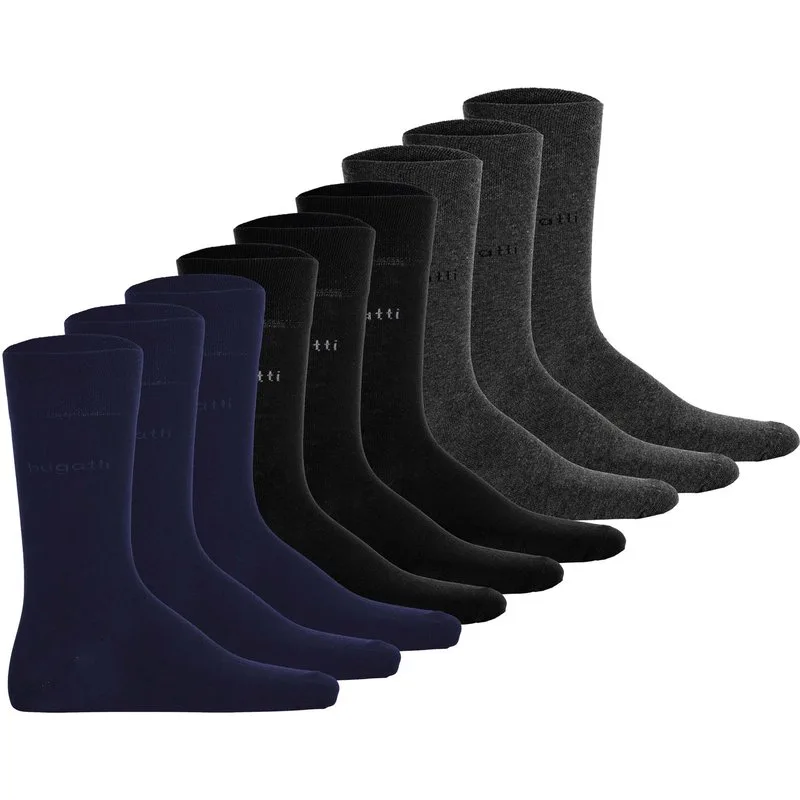 Effenkleurige herensokken van Bugatti in een verpakking van 9 stuks. Eenvoudige sokken gemaakt van een zachte katoenmix. Perfect voor dagelijks gebruik.