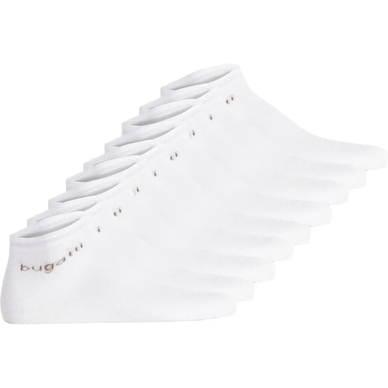 Effenkleurige sneakersokken voor heren van het merk Bugatti. Basissokken in een handige verpakking van 9 stuks. Met logo-opdruk. Perfect voor dagelijks gebruik.