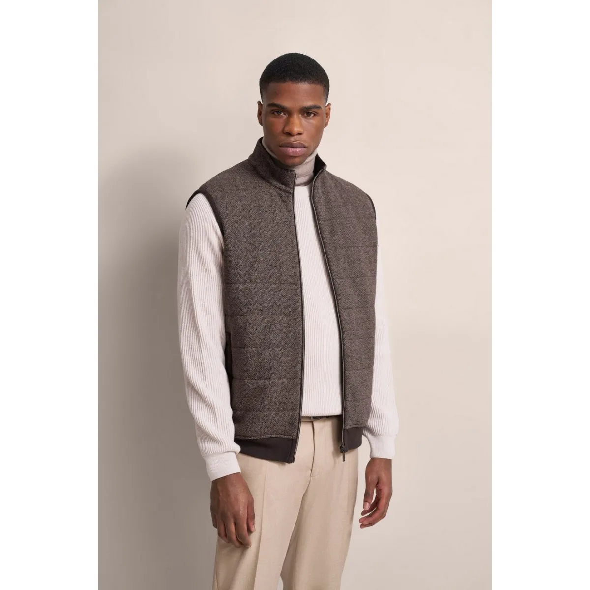 Ervaar casual stijl met het bugatti gilet! Gemaakt van een katoen-polyestermix met een elegant visgraatpatroon en lichte vulling voor extra warmte. De doorgestikte structuur en moderne opstaande kraag zorgen voor een sportieve touch. Dankzij de normale pasvorm en praktische steekzakken combineert dit gilet comfort met functionaliteit - ideaal voor elke gelegenheid.
