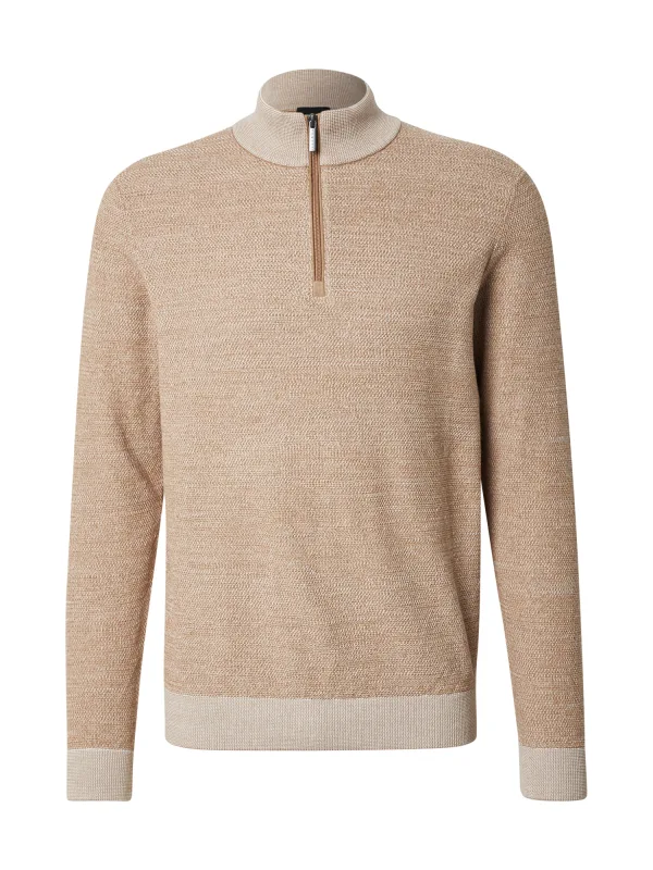 Design: Geribbelde kraag, Rechte zoom, Geribd ceintuurtje, Halve rits; Type sluiting: Ritssluiting; Materiaal: Knitwear; Halstype: Schipperskraag; Motief: Mélange; Extra's: Fully fashioned, Voelt zacht aan; Pasvorm: Normale pasvorm; Armlengte: Lange mouw
